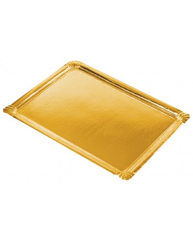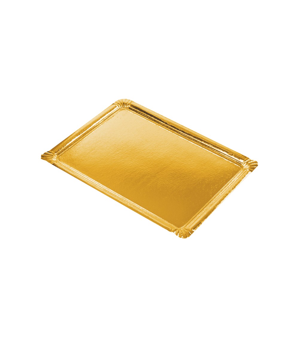 Plateaux rectangulaires en carton robuste, avec couche de PE en couleur d'or.