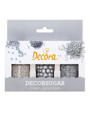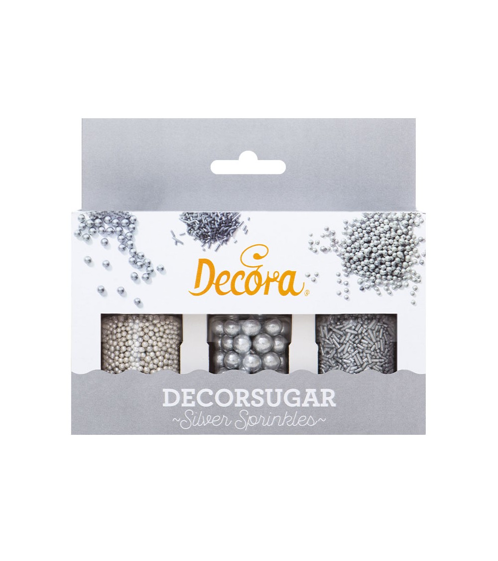 Ingrédients : Perles d'argent : Sucre, amidon ( blé et maïs), sirop de glucose, colorant : E173, gélatine, huiles végétales de coco et de colza, agent d'enrobage : cire d'abeille blanche. Peut contenir des traces de fruits à coque, lait, soja, œufs et dérivés.