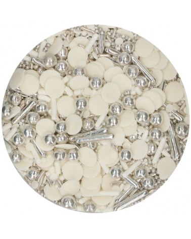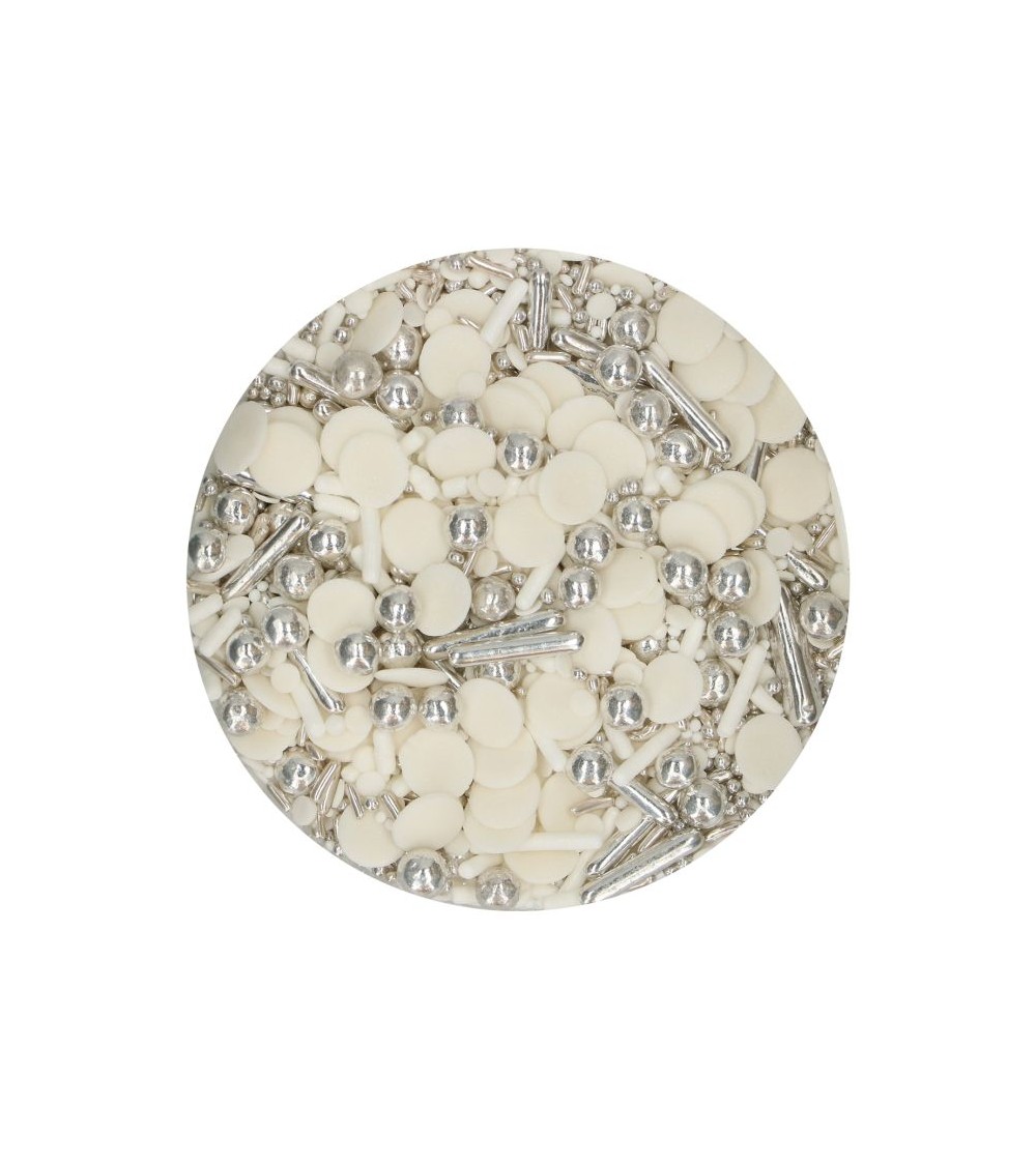 Décorez vos cupcakes, brownies ou desserts à thème hivernal avec cet amusant mélange de sprinkles de FunCakes. Le mélange contient différents sprinkles blancs et argentés pour un résultat magnifique.